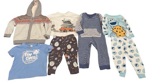 Great mix of outfits including a warm hooded sweater coat, pajamas, and everyday playwear.