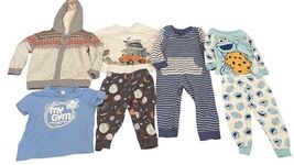 Toddler boys clothing lot, all size 18 months. Includes 7 pieces featuring Mayoral, Carter’s, Cat & Jack, Rabbit Skins, and Sesame Street (Cookie Monster).