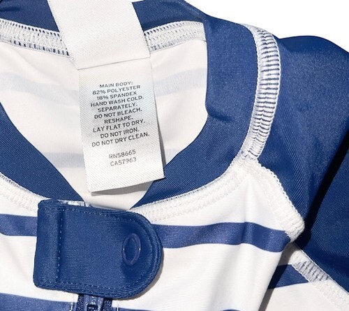 Adorable Tucker + Tate baby rash guard romper, perfect for beach days, pool time, or vacations.