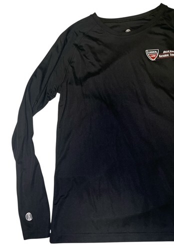 Official USTA Billie Jean King National Tennis Center long sleeve performance shirt in black.