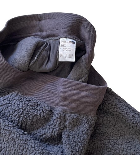 Super soft Uniqlo sherpa fleece jogger pants in gray. Comfortable and warm with a relaxed fit, elastic waistband, and cuffed ankles. Perfect for lounging, casual wear, or colder weather.