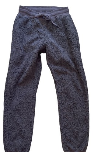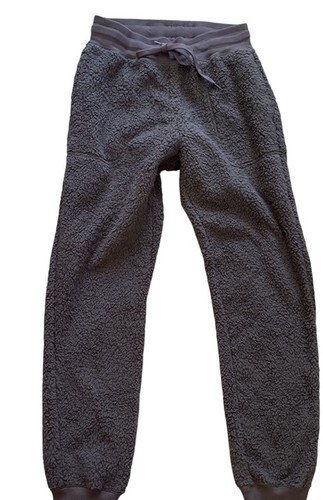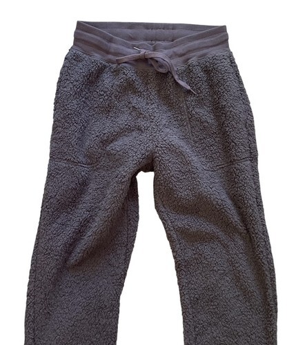 Super soft Uniqlo sherpa fleece jogger pants in gray. Comfortable and warm with a relaxed fit, elastic waistband, and cuffed ankles. Perfect for lounging, casual wear, or colder weather.