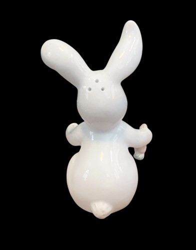Adorable vintage 1978 Fitz and Floyd ceramic bunny salt shaker. Measures 3.75" tall and features a white glazed finish with pink and green accents, curled ears, and a carrot in hand. Marked “FF 1978” on the bottom. A charming addition to your Easter table, spring decor, or Fitz and Floyd collection. This listing is for the single shaker only. Good Condition.