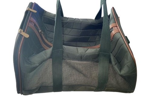 Vintage Sherpa pet carrier bag, dated 1996. This is an early Sherpa soft-sided carrier with quilted fabric, mesh ventilation panels, and both carry handles and an adjustable shoulder strap.