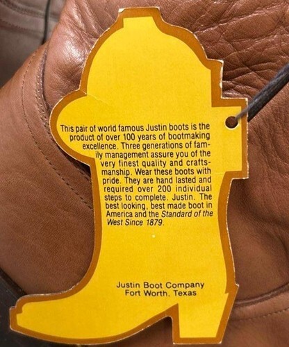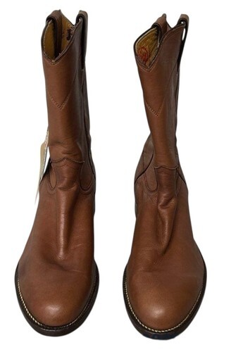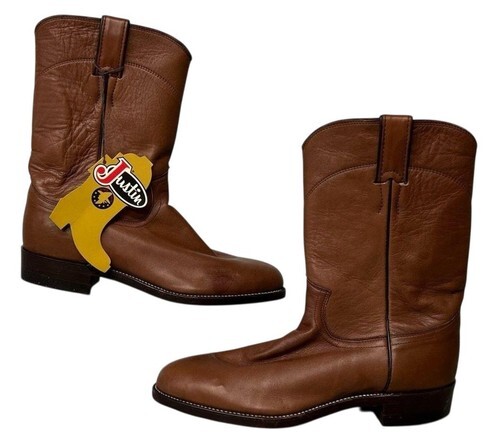 Authentic Justin cowboy boots in dark brown leather, made in the USA. New with original tags and never worn.