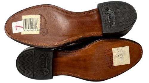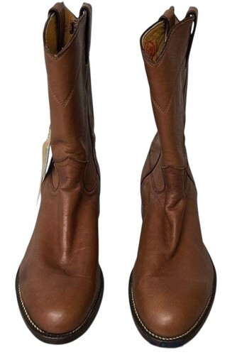 Boots are new and unworn. There is a small dark spot/discoloration on the leather (shown in photos), likely from storage. Does not affect wear.