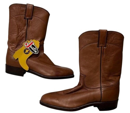 Authentic Justin cowboy boots in dark brown leather, made in the USA. New with original tags and never worn.