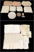 Large assorted vintage linen and cotton lot featuring a variety of elegant handmade and embroidered pieces — perfect for restoration, repurposing, or vintage décor display. Includes mixed sizes, patterns, and detailing.