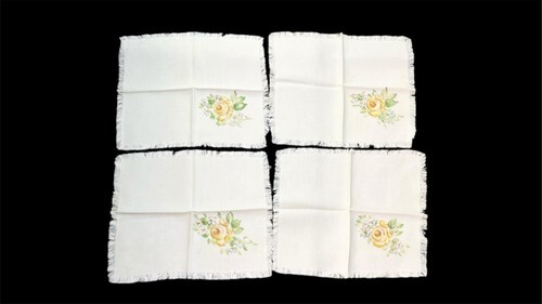 (4) Off-white rose napkins