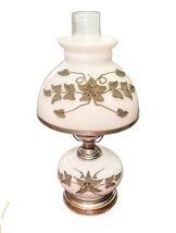 • Vintage Milk Glass Hurricane Table Lamp Floral Brass Base Works 16.75” image 2