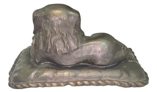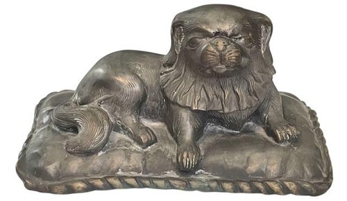 Vintage Pekingese Dog Sculpture Cast Metal Bronze Tone Heavy Statue 11lb+