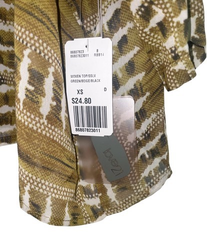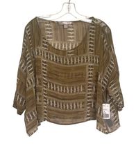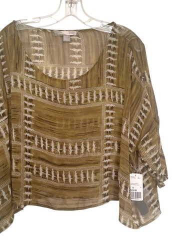 Brand new with tags Love21 women’s sheer woven top in size XS. This lightweight boho-style blouse features an earthy green and beige patterned design, flowy boxy silhouette, and semi-sheer fabric—perfect for layering or warm-weather outfits.