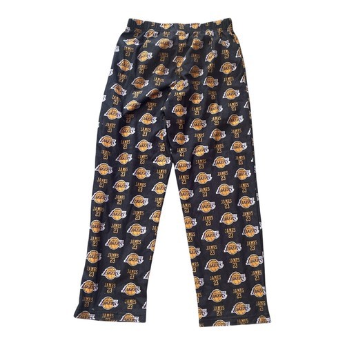 Black fleece pants (Size L 10-12) – All-over Lakers and LeBron James #23 logo print, elastic waist, some pilling.